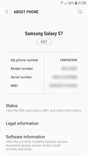 Поскольку я пользователь Samsung Galaxy, благодаря пользовательскому интерфейсу Samsung TouchWiz это не так просто. Вы все еще сможете увидеть его, используя Настройки и О телефоне, но мой номер был указан как Неизвестный. Кажется, что телефон не принимал номер с SIM-карты, поскольку это была замененная SIM-карта, а не оригинал, который я получил с контрактом.