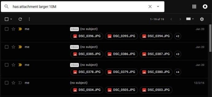 С точки зрения организации вашей входящей почты лучше, это может быть полезно в некоторой степени. Как только вы получите результаты, которые вы ищете, вы должны начать проверять вручную, чтобы увидеть, какое письмо имеет наибольшее вложение. Если у вас есть две или три страницы результатов, это не значит, что самое большое вложение будет указано в верхней части списка.