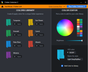 Установка Colorizer происходит быстро и безболезненно. Откройте страницу Colorizer в Softpedia, чтобы добавить ее в Windows 10. Нажмите кнопку «Загрузить», чтобы сохранить мастер установки программного обеспечения. Затем нажмите FolderColorizer2.exe, чтобы установить Colorizer. Когда вы впервые используете Colorizer, он предложит вам обновить его до последней версии. Существует бесплатная пробная версия, но после того, как вы раскрасите несколько папок, вам, к сожалению, придется купить лицензию.