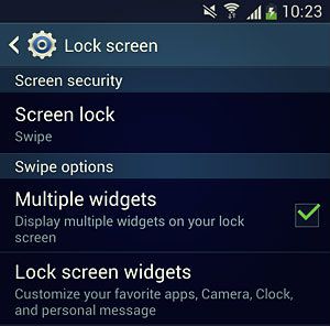 - Во-первых, использование нескольких виджетов / приложений на экране блокировки доступно, только если для блокировки экрана Galaxy S4 установлено значение красть. Если вы еще этого не сделали, идите домой настройки > Мое устройство > Экран блокировки > Блокировка экрана а затем выберите красть.