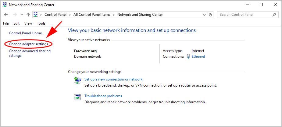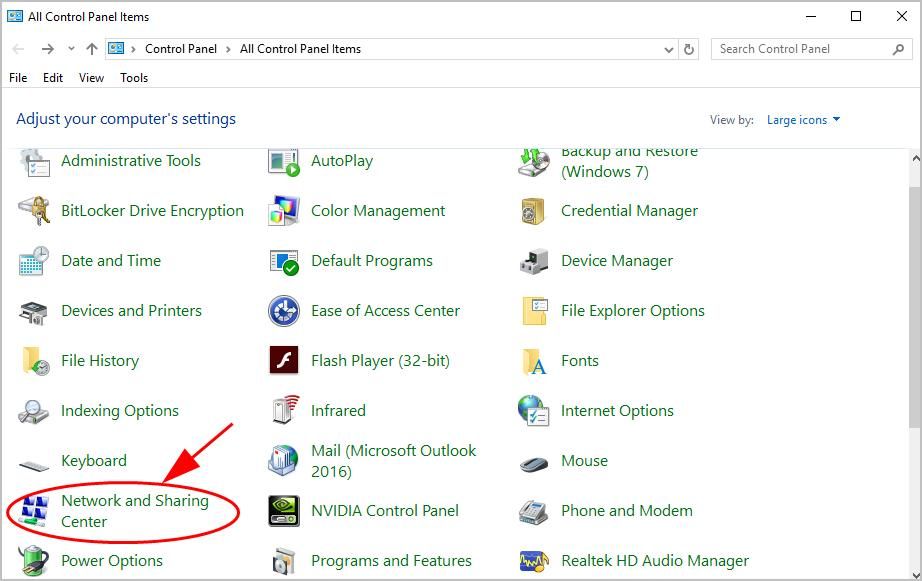 - открыто Панель управления, и нажмите Центр коммуникаций и передачи данных.