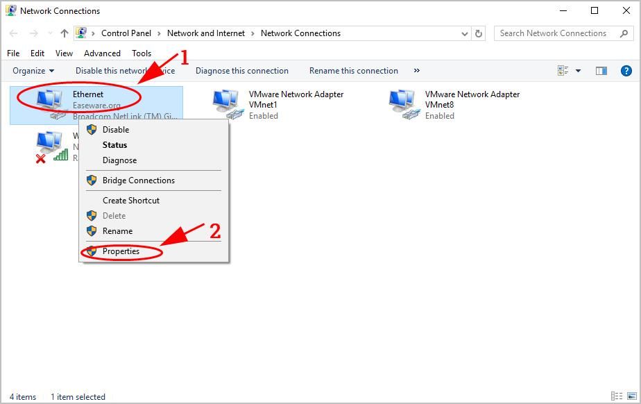 - Щелкните правой кнопкой мыши на вашем текущее соединение, и выберите свойства.