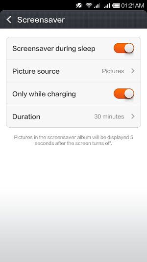 В отличие от других телефонов Android, в MIUI V5 нет опций Daydream. Поэтому, если вы хотите запустить заставку во время зарядки телефона Redmi, вам нужно включить Заставка вариант.