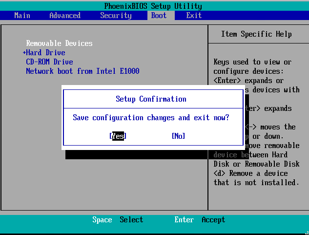 Если к вашему компьютеру подключены различные USB-устройства, убедитесь, что ваш USB-накопитель указан в 1-м разделе этого раздела. - Нажмите F10 чтобы сохранить настройки и выйти из BIOS. Затем нажмите Войти с выбранным Да.