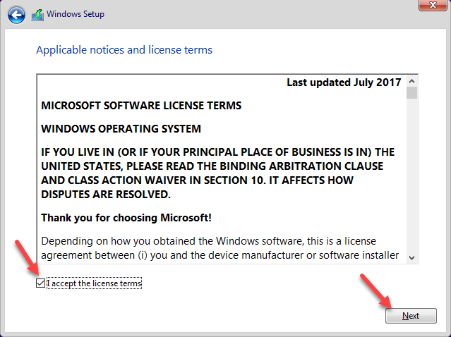 - Отметьте Я принимаю условия лицензии. Затем нажмите следующий.