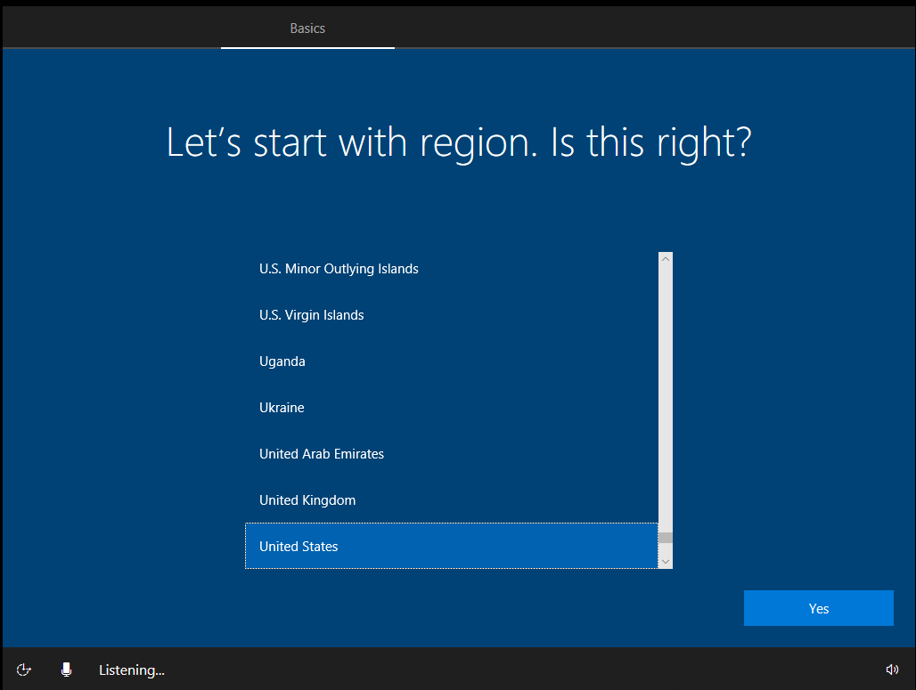 - Следуйте инструкциям на экране OOBE (Out-of-Box-Experience), чтобы настроить Windows 10 на своем компьютере. Настройка включает в себя, но не только, как настройки Кортана и региона.