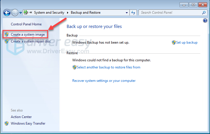 2) Создайте полную резервную копию вашего компьютера с Windows 7