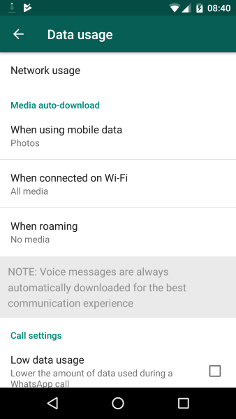 Это остановит WhatsApp загрузку любых носителей на ваше устройство в будущем. Имейте в виду, что вы не сможете сохранить какой-либо из этих носителей после удаления чата или журнала вызовов, если вы не выберете его вручную и не нажмете «Сохранить».