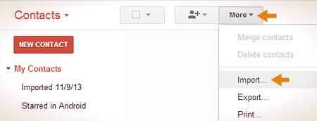 II. Импортируйте файлы vCard (.vcf) в Контакты Google