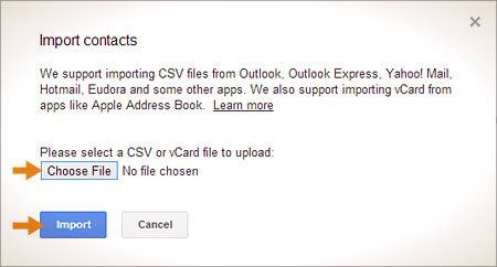 - Нажмите Выберите файл выбрать контактный файл .vcf, который был создан в Часть I, а затем нажмите Импортировать. Повторите этот шаг для всех файлов .vcf.