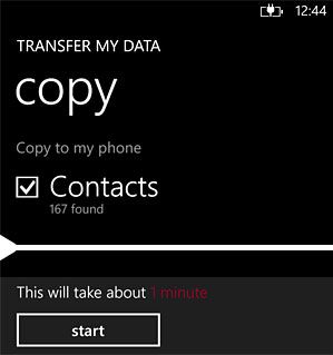 - Ваш Lumia 920 продолжит определять количество контактов, которые можно перенести. Нажмите Начните начать процесс копирования.
