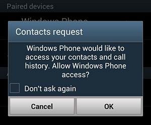 - На Galaxy S3, если вы видите запрос «Разрешить доступ Windows Phone». Нажмите Хорошо.