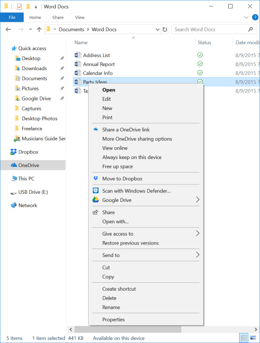 Чтобы поделиться файлами, хранящимися в OneDrive, откройте Проводник, перейдите в папку OneDrive и щелкните правой кнопкой мыши файл, которым вы хотите поделиться. Затем выберите Поделиться ссылкой OneDrive.