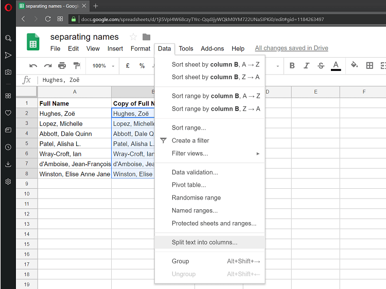 Вот самый простой способ разбить полные имена на разные столбцы с помощью инструментов Google Sheets.