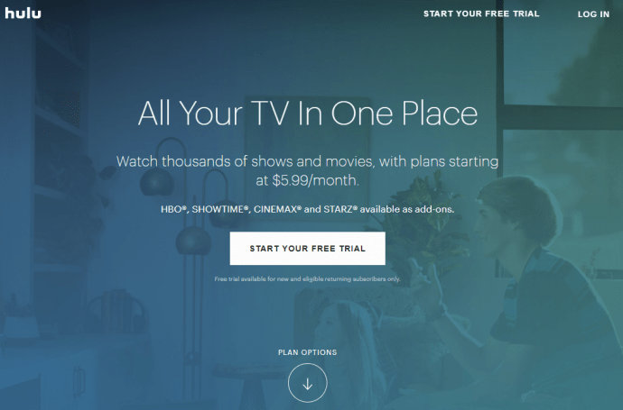 Hulu — еще один крупный потоковый сайт с очень привлекательным преимуществом, заключающийся в обновлении до премиальных пакетов каналов, таких как HBO и Showtime Начиная с 5,99 долл. США в месяц, Hulu также предлагает бесплатный контент, обычно более старые сезоны шоу, на которые у него есть лицензии, и более старые фильмы.