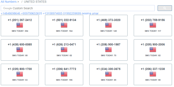 - Посетите FreePhoneNum и выберите одно из отображаемых номеров.