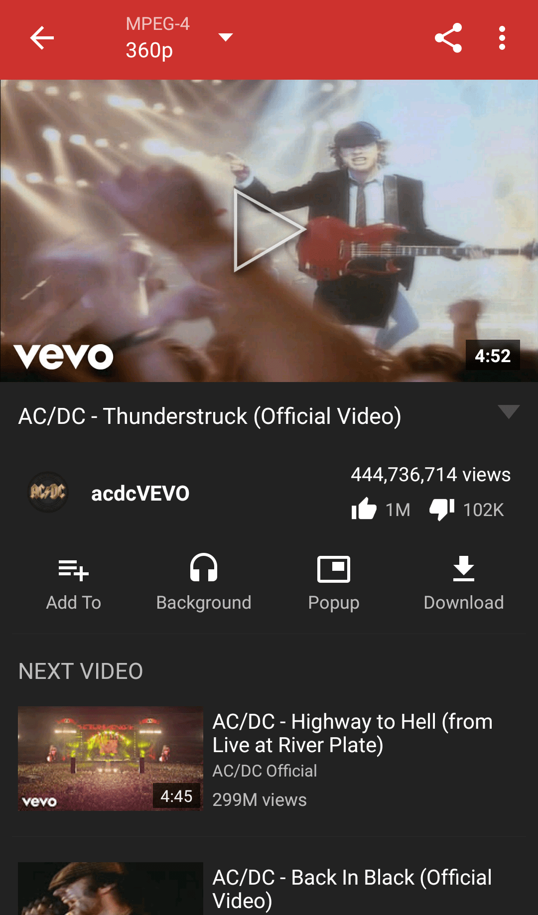 После того, как вы запустите его, найдите свою песню и воспроизведите ее. Под видео вы увидите опцию «Фон». После того, как вы его выберете, ваша музыка продолжит воспроизводиться даже после выключения экрана.