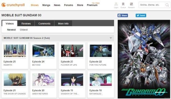 Ни один список «где посмотреть вставку заголовка аниме здесь» не будет полным без упоминания Crunchyroll. Это сайт, который вам нужен, если вы увлекаетесь аниме. Кажется, он содержит огромное количество контента Gundam, и хотя категоризация не самая лучшая, на главной странице есть полезный фильтр «Новые и самые старые». Это должно позволить вам решить, смотреть ли новейшие эпизоды или смотреть их по порядку.