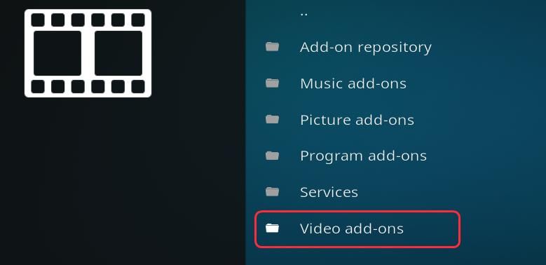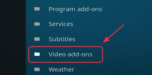 8) Выберите тип надстройки, который вам нужно установить. Например, если вы хотите установить Exodus или дополнения для просмотра ТВ-шоу в прямом эфире, вы должны выбрать Видео дополнения.