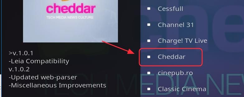 4) Выберите надстройку, которую вы хотите установить для просмотра прямого эфира, например чеддер, вынужденно а также USTV сейчас.