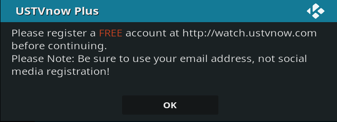 Заметка: Если вы устанавливаете USTV сейчас или USTVnow Plus на Kodi для просмотра прямого эфира, вам необходимо зарегистрировать учетную запись на веб-сайте USTV now и войти в нее на Kodi при открытии дополнения USTV now.