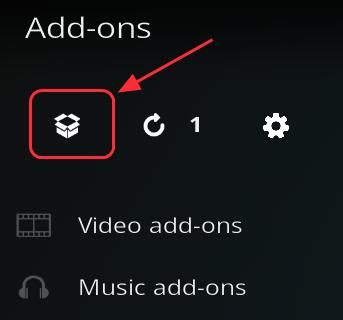 1) Перейти к главное меню на твоем коди> Дополнения > то Значок пакета в левом верхнем углу.