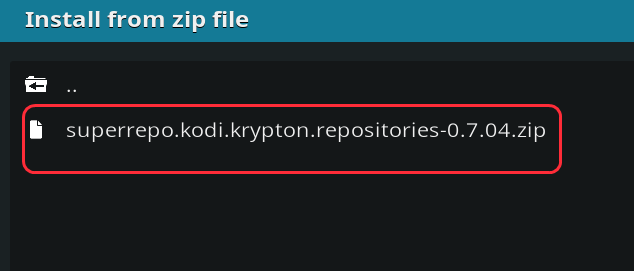 9) Выберите хранилища > superrepo > superrepo.kodi.krypton.repositories-xxx.zip.