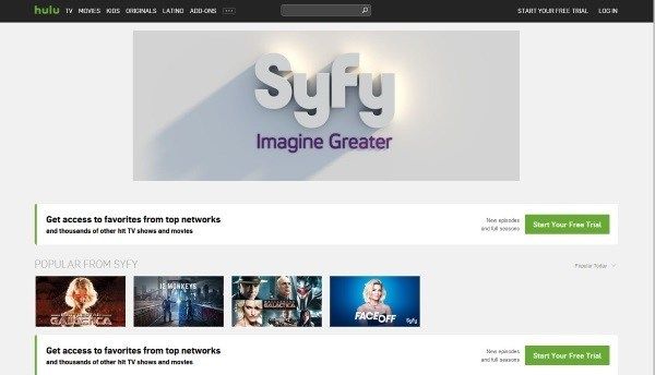 Hulu предлагает много контента SyFy и бесплатную пробную версию, так что вы можете попробовать, прежде чем купить. Он не предлагает канал, и при этом он не предлагает все шоу, но там есть приличное количество контента SyFy. Я сомневаюсь, что SyFy будет вашей единственной причиной подписки на эту услугу, но если вы ищете научно-фантастический контент, вы получите его здесь.