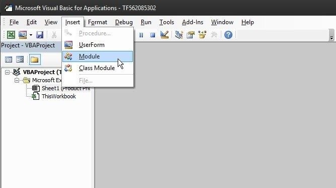 - Дождитесь появления окна Microsoft Visual Basic для приложений