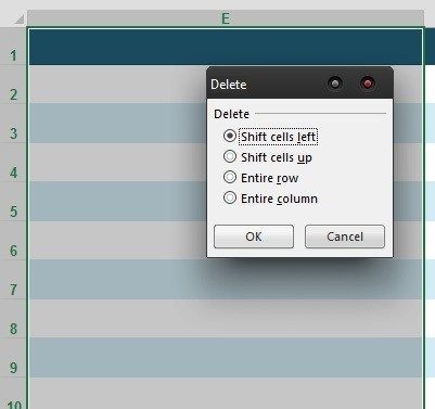В зависимости от того, какую версию Excel вы используете, вы можете получить разные формулировки. Но в любом случае две верхние опции в меню «Удалить ячейки» всегда одинаковы.