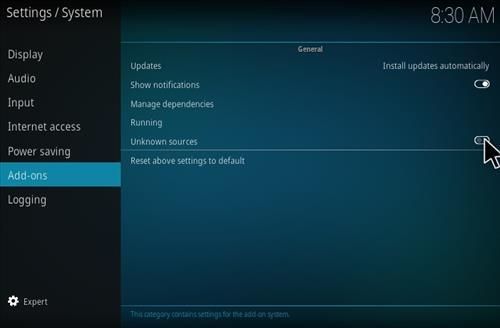 Как и все надстройки Kodi, 1channel хранится в репозитории, что позволяет легко находить и обновлять его. Однако, прежде чем вы сможете установить 1channel для Kodi, вам нужно включить неизвестные источники вариант. Активация этой опции необходима, если вы планируете загружать сторонние дополнения для Kodi. Я уже говорил об этом ранее в статье Navi-X, но с радостью вернусь к шагам прямо здесь.