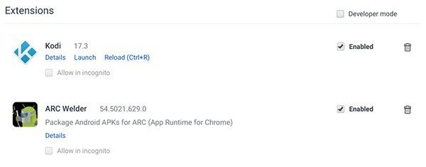 ARC Welder позволяет одновременно тестировать только одно приложение Android в Chrome OS, поэтому нам придется сохранить экземпляр Kodi, работающий на вашем Chromebook, как расширение в Chrome, чтобы упростить запуск в любой момент времени. Это включает в себя добавление .APK в качестве ссылки справа от вашей панели URL в Chrome.