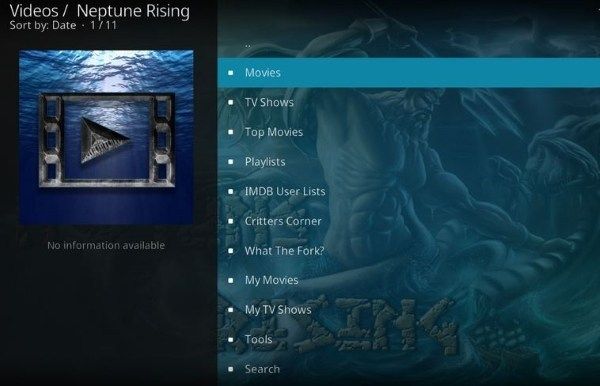 Neptune Rising концентрируется на фильмах и телешоу и делает большую работу или организует все логически. Аккуратный интерфейс и ориентированный на океан скин также делают его достойным внимания. Neptune Rising, созданный г-ном Бламо, представляет собой надежный аддон, который хорошо работает, включает в себя некоторый контент и каналы, которые другие аддоны не поддерживают. Видимо, это потому, что он использует другой скребок, чем другие, но у меня нет опыта в этом отделе, поэтому оставлю его в покое. В любом случае, контент превосходен.