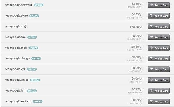 - Выберите другой домен верхнего уровня — измените .com на .ninja, .net, .org или что-то еще.