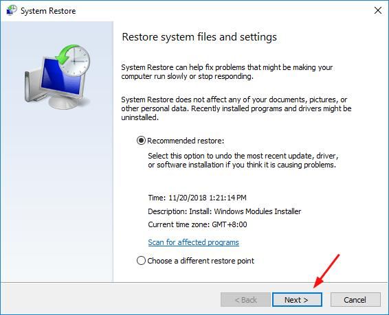 Если ваш компьютер работает нестабильно или он падает на синий экран, вы можете выполнить Восстановление системы попытаться восстановить систему обратно к одной из точек восстановления, созданных в период стабильности.
