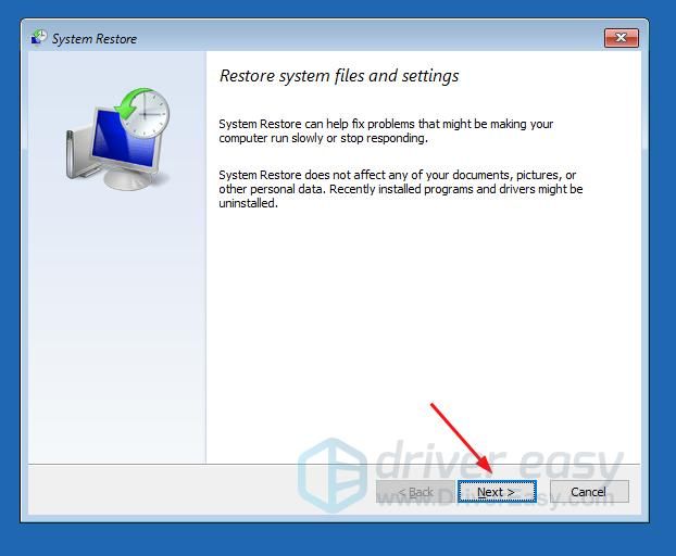 - Нажмите следующий и следуйте инструкциям на экране, чтобы завершить восстановление вашей системы.