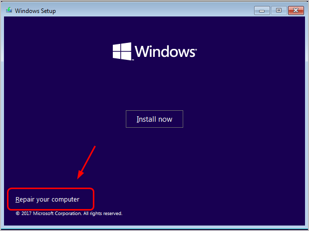 - Выполните шаги 1) — 7) в способе 2, чтобы загрузить компьютер с подготовленного USB-накопителя и войти в среду восстановления Windows.