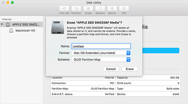 Как только Дисковая утилита откроется на вашем дисплее, вы увидите список установленных дисков вашего компьютера в левой части панели Дисковая утилита. Вы хотите найти загрузочный диск вашего MacBook Air; для большинства пользователей это основной и единственный диск в списке. Выберите загрузочный диск из списка, затем нажмите кнопку «Стереть» в Дисковой утилите. Выберите всплывающее окно «Формат», выберите «Mac OS Extended», присвойте переформатированному диску имя, затем подтвердите удаление. Теперь вы увидите, как дисплей начинает стирать диск и данные вашего MacBook Air. Когда этот процесс завершится, ваш диск будет успешно очищен, но вы еще этого не сделали. На вашем компьютере больше не установлена операционная система, т.е. независимо от того, продаете ли вы свой ноутбук или просто переформатируете диск, чтобы повысить скорость или производительность вашего компьютера, вам все равно придется переустанавливать операционную систему.