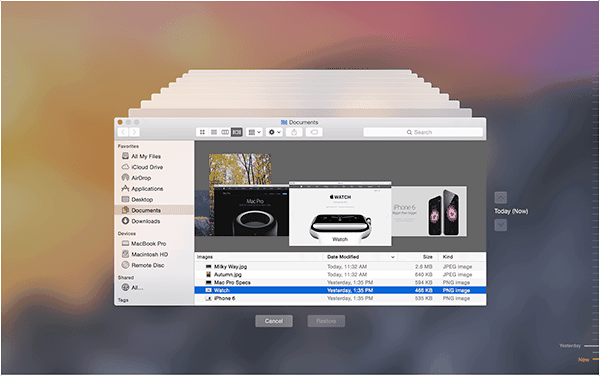 Начните с открытия Time Machine, либо из своей док-станции, либо, если вы удалили ярлык из своей док-станции, щелкнув значок Apple в строке меню в верхней части дисплея, выбрав «Системные настройки» и выбрав «Время». Машина ». Подключив внешний жесткий диск к MacBook Air, вы можете использовать Time Machine для просмотра файлов и поиска того, что вы хотите восстановить. Временная шкала в правой части экрана вашего MacBook покажет дату и время каждой резервной копии, что позволит вам пролистать список и найти правильную или самую последнюю резервную копию для восстановления. Выбрав файл (ы), вы можете нажать кнопку восстановления, чтобы восстановить их на вашем устройстве. Для предварительного просмотра файла выберите определенный файл и нажмите клавишу пробела на клавиатуре.