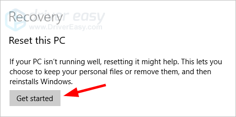 - Нажмите на Начать кнопка под перезагрузить этот компьютер.