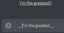 Сохраняя простоту — процитируйте ваше сообщение с двойным подчеркиванием (__). Это будет иметь __I, я самый лучший !! __, показывая в чате как: