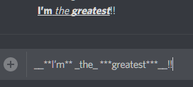 Вы также можете немного повеселиться с текстом разметки и выбрать, как смешать все вместе до этого момента. __ ** Я ** _the_ *** величайший *** __ !! Быстро сообщения как: