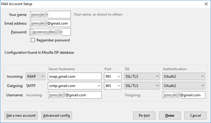 Настройки IMAP в Thunderbird от Mozilla.