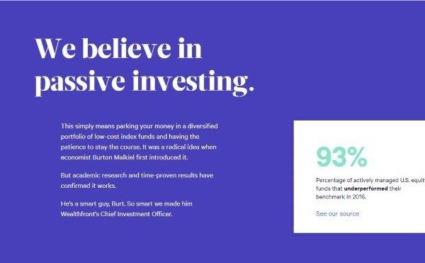 Робо-консультант Wealthfront использует алгоритм Modern Portfolio Theory для управления своими деньгами и инвестирования в индексные фонды биржевого фонда (ETF). Это основной способ работы многих таких менеджеров, который представляет собой практичный, медленный способ инвестирования, который позволяет вам разумно инвестировать с минимумом суеты и финансовых ноу-хау.