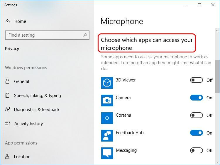 3) Прокрутите вниз до Выберите, какие приложения могут получить доступ к вашему микрофону раздел и убедитесь, переключатель для приложения, на котором вы играете в микрофон повернулся На.