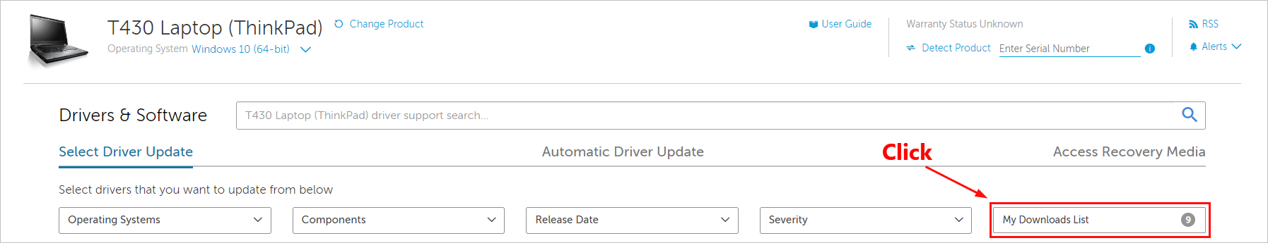 - Нажмите Мой список загрузок чтобы просмотреть все драйверы, которые вы хотите скачать.
