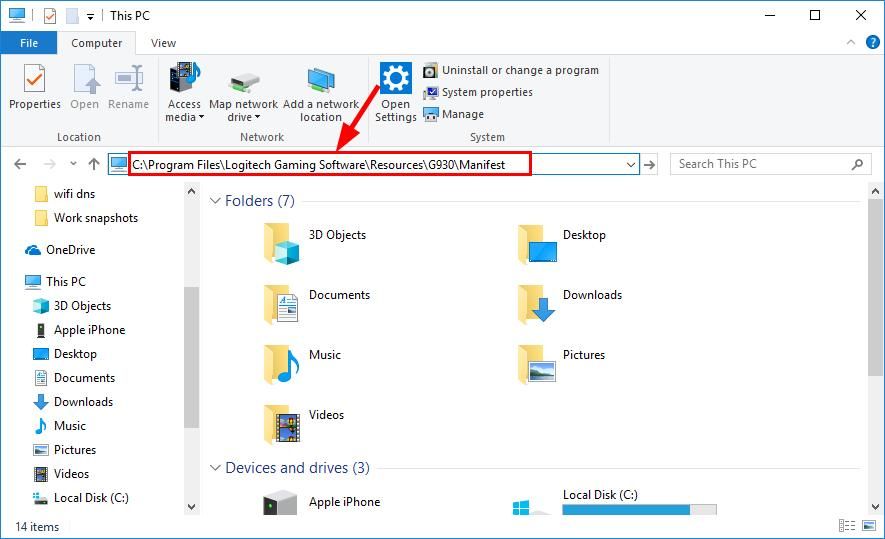 C: \ Program Files \ Игровое программное обеспечение Logitech \ Resources \ G930 \ Manifest