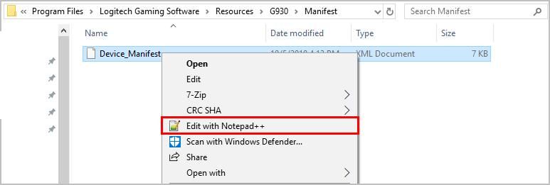 - Щелкните правой кнопкой мыши на Device_Manifest файл и редактировать с помощью текстового редактора (например, Блокнот ++, Блокнот, Evernote).