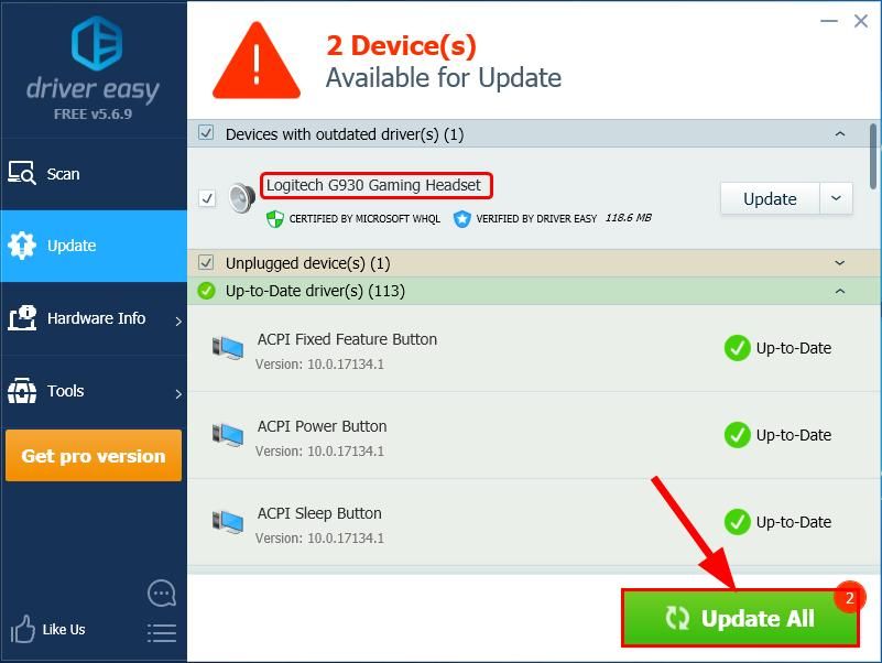 это Logitech G930 вырезать проблема может возникнуть, если у вас устаревшие Logitech G930 Водитель. Таким образом, вы должны обновить драйвер, чтобы увидеть, если он решает проблему. Если у вас нет времени, терпения или навыков для обновления драйвера вручную, вы можете сделать это автоматически с Водитель Легко.
