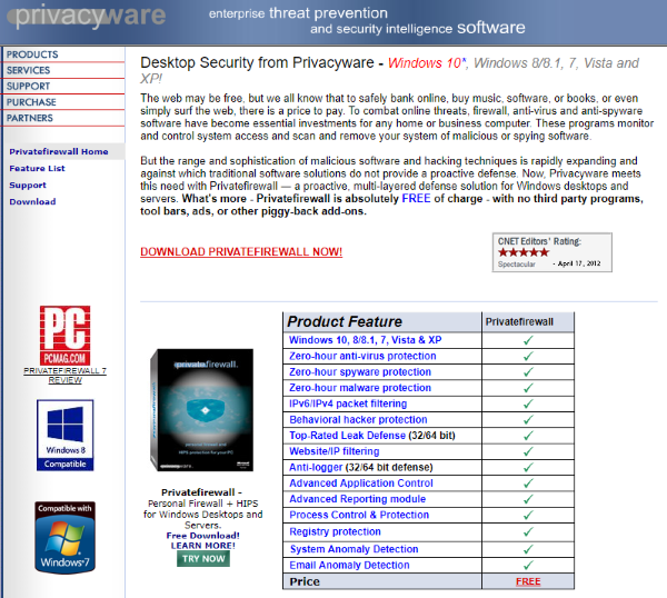 На первый взгляд, Privatefirewall выглядит как нечто из 1990-х годов. Веб-сайт очень низко технологичен, и интерфейс самой программы не намного лучше. Однако, как только вы пройдете через это, программа действительно будет очень хорошей. Он имеет несколько хороших функций, высокий уровень защиты и простую команду блокировки трафика для всего интернет-трафика.